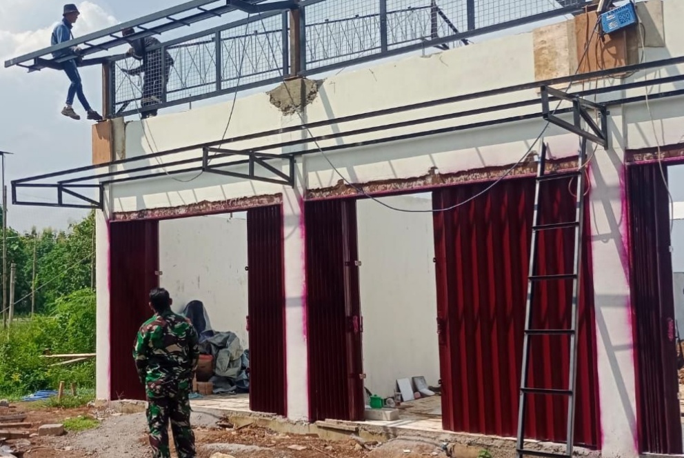 Pada kegiatan tersebut, proses pembangunan memasuki tahap pemasangan rangka atap. Sejumlah pekerja tampak bahu-membahu menyelesaikan pekerjaan dengan penuh semangat. Sementara Serka Ruswono memastikan seluruh proses berjalan aman, tertib, dan sesuai rencana.