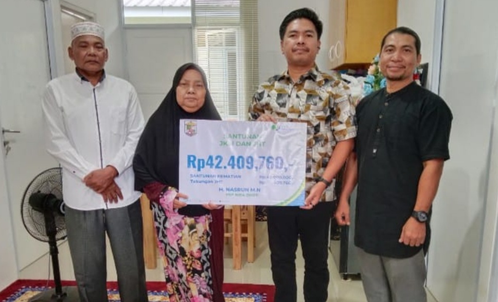 Kepala BPJS Ketenagakerjaan Cabang Pelalawan Saut Muda Tua Napitu didampingi oleh M. A Hafiz Hanafi dan Melpa Nurhayati Hutasoit mengatakan, penyerahan santunan ini menjadi bukti nyata bahwa program jaminan sosial ketenagakerjaan hadir untuk meringankan beban keluarga pekerja yang ditinggalkan.