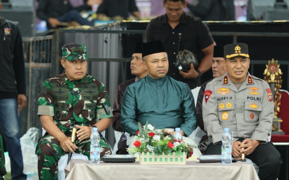 Acara yang berlangsung khidmat ini turut dihadiri oleh para pejabat tinggi, di antaranya Kapolda Riau Irjen Pol Dr. Herry Heryawan, S.I.K., M.H., M.Hum, Pangdam XIX/TT Mayjen TNI Dr. Agus Hadi Waluyo, S.A.P., M.M., CHRMP, Danrem 031/WB Brigjen TNI Jarot Suprihanto, Bupati Kuantan Singingi Dr. Suhardiman Amby, A.K., M.M., serta Kapolres Kuansing AKBP R. Ricky Pratidiningrat, S.I.K., M.H. bersama jajaran Forkopimda dan tokoh adat Kabupaten Kuansing.