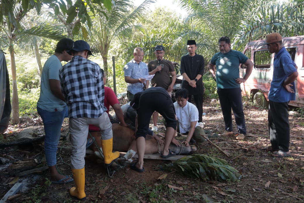 KUANTANSINGINGI, Kupas Peristiwa.id. –– Dalam rangka memperingati Hari Raya Idul Adha 1446 Hijriyah, Polres Kuantan Singingi melaksanakan kegiatan penyembelihan dan penyerahan hewan qurban yang dipusatkan di Asrama Polres Kuansing pada Sabtu pagi, (7/6/2025). Kegiatan ini mengusung tema “Meningkatkan Keimanan, Ketakwaan, dan Kepedulian Sosial Guna Mewujudkan Polri Presisi”, sebagai bagian dari implementasi nilai-nilai keagamaan dan sosial di lingkungan kepolisian.