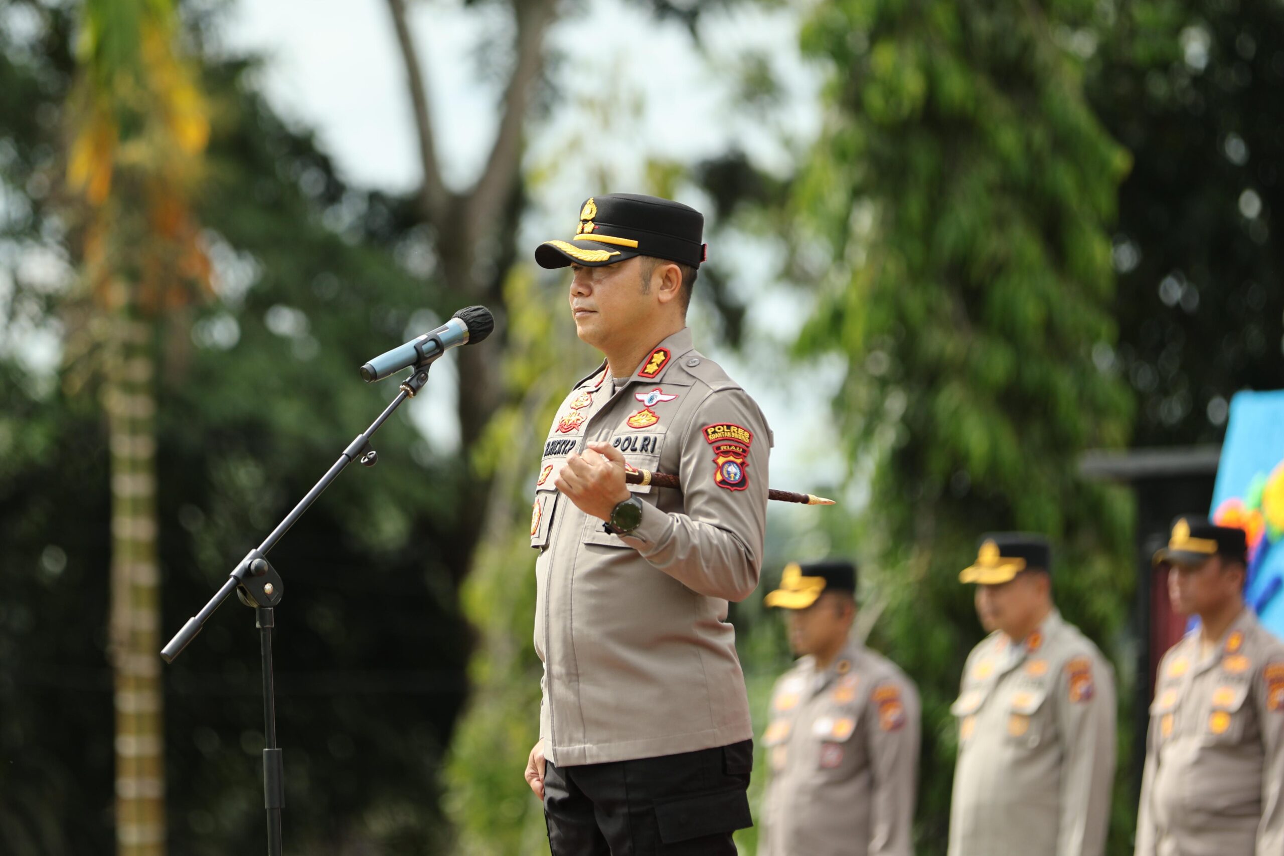 Upacara dipimpin langsung oleh Kapolres Kuantan Singingi AKBP R. Ricky Pratidiningrat, S.I.K., M.H., dan dihadiri oleh Wakapolres Kuansing Kompol Novaldi, S.Sos., M.Si., para Kabag, para Kasat, Kapolsek jajaran, para perwira, pengurus Bhayangkari Cabang Kuansing, serta seluruh personel Polres Kuansing.