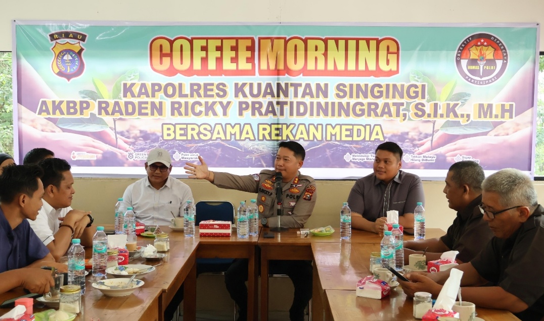KUANTANSINGINGI / Kupas Peristiwa.id – Kapolres Kuantan Singingi AKBP R. Ricky Pratidiningrat, S.I.K., M.H melaksanakan kegiatan Coffee Morning bersama rekan-rekan media di Kantin Kopi Chagonti Polres Kuansing, sekitar pukul 09.00 WIB, Rabu (19/11/2025).