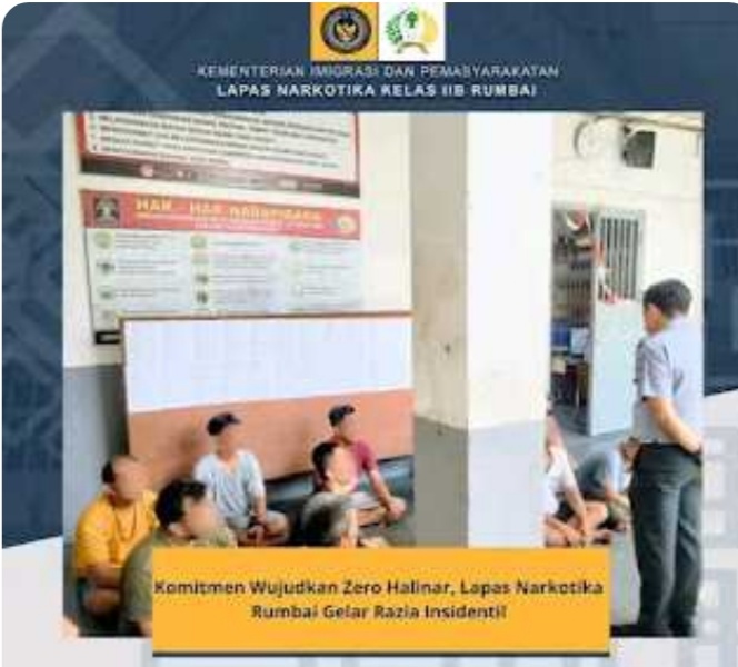 Razia berlangsung di blok hunian Lapas Narkotika Rumbai, melibatkan kegiatan penggeledahan menyeluruh, termasuk pemeriksaan barang-barang di kamar warga binaan dan penggeledahan badan secara langsung oleh petugas. Penggeledahan ini dilakukan untuk memastikan tidak ada barang terlarang seperti narkoba, senjata tajam, atau barang-barang lain yang berpotensi mengganggu keamanan.