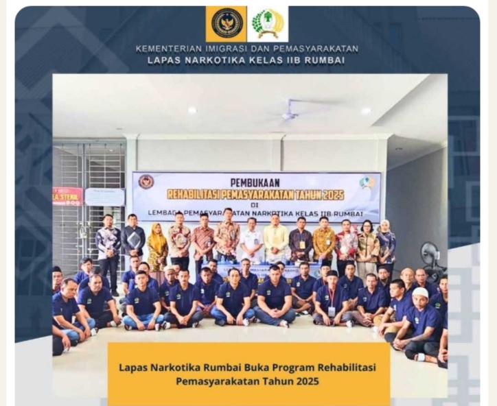 Pekanbaru / Kupas Peristiwa.id — Lembaga Pemasyarakatan Narkotika Kelas IIB Rumbai menggelar pembukaan Program Rehabilitasi Pemasyarakatan Tahun 2025 di Klinik Pratama Lapas Narkotika Rumbai, Jum’at (19/9/2025). Sebanyak 125 orang warga binaan mengikuti kegiatan ini sebagai peserta rehabilitasi. Acara dibuka secara resmi oleh Kepala Lembaga Pemasyarakatan Narkotika Kelas IIB Rumbai, Reinhards Indra Pitoy serta turut dihadiri Pejabat Struktural dan Perwakilan Ikatan Konselor Adiksi Indonesia Riau.