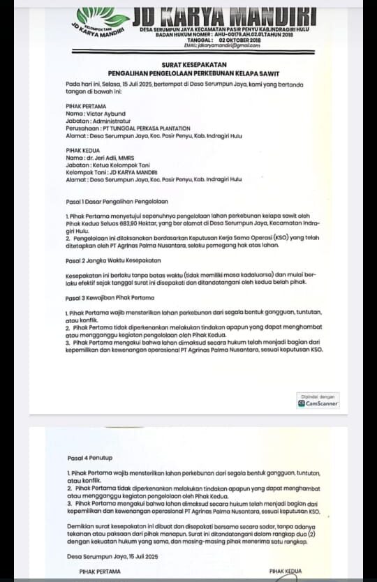 Peranap, Minggu, 03 Agustus 2025 — Sejumlah warga dan tokoh masyarakat meminta PT. Agrinas Palma Nusantara untuk menjalankan regulasi secara konsisten dan profesional dalam menetapkan kemitraan kerja sama operasional (KSO) dengan kelompok tani maupun koperasi.