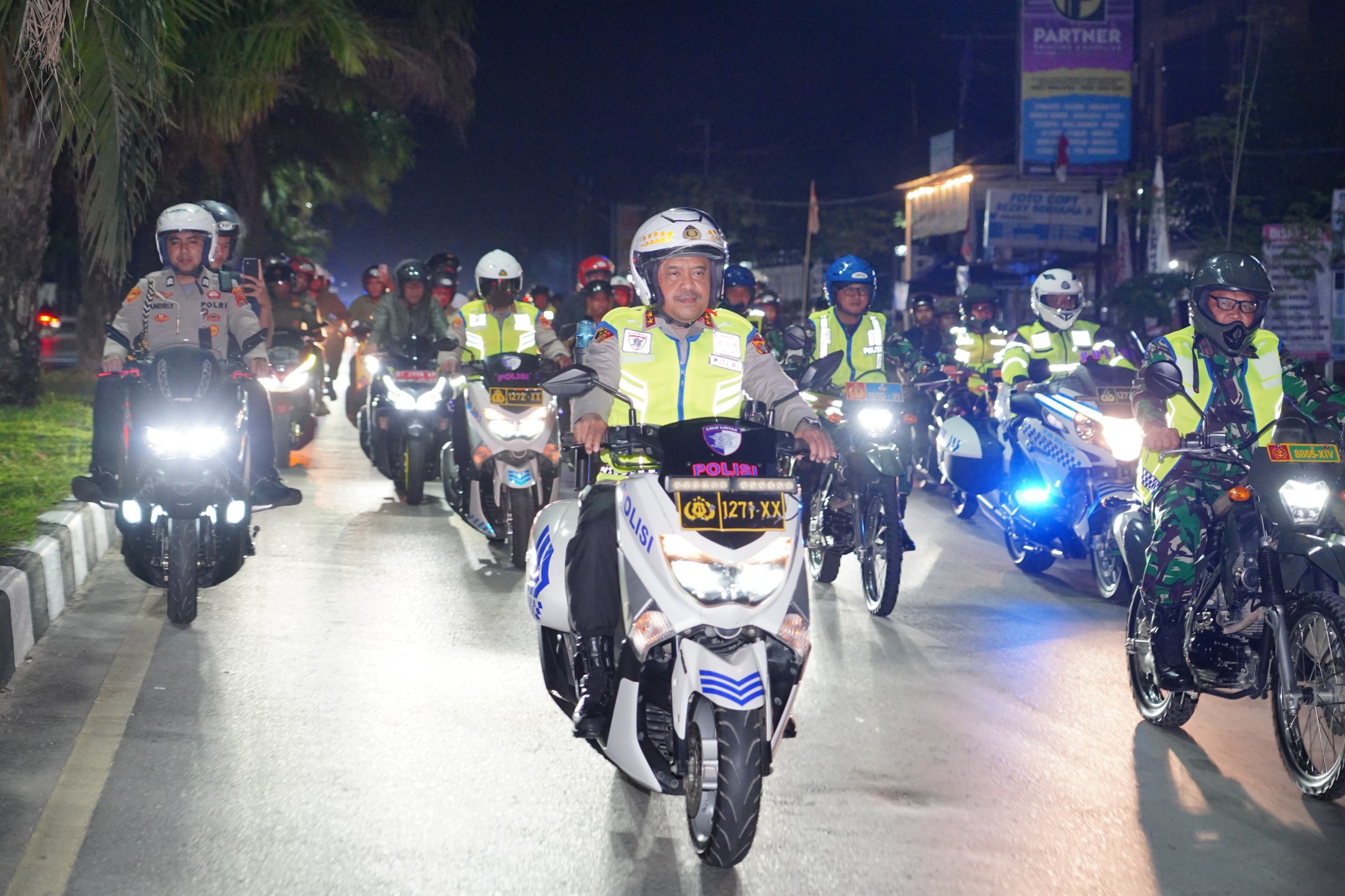 Patroli menempuh rute dari Mapolda Sultra, melewati Pasar Anduonohu, Jembatan Teluk Kendari, By Pass Kendari Beach, hingga berakhir di kawasan MTQ Kendari.