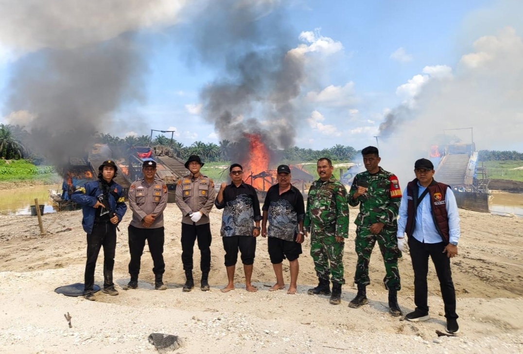 Sebagai langkah tegas, petugas kemudian melakukan pemusnahan terhadap 12 unit rakit tersebut dengan cara dibakar guna mencegah kembali digunakan untuk aktivitas ilegal.
