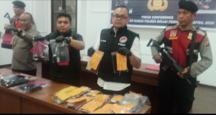 Binjai / Kupasperistiwa.id. — Polres Binjai menggelar konferensi pers terkait keberhasilan pengungkapan sejumlah kasus tindak pidana narkotika serta kejahatan jalanan, seperti pencurian kendaraan bermotor (curanmor) dan begal, Selasa (28/4/2026)