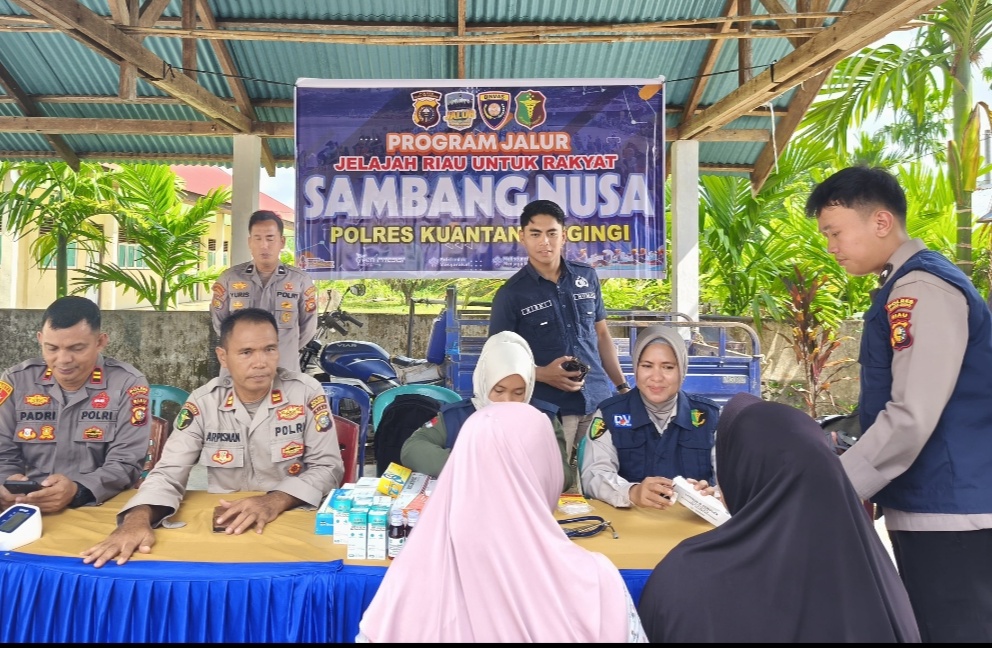 KUANTANSINGINGI / Kupasperistiwa.id – Dalam rangka mendukung Program JALUR (Jelajah Riau Untuk Rakyat), Polres Kuantan Singingi (Kuansing) melalui Sat Binmas bersama Sie Dokkes melaksanakan kegiatan Sambang Nusa berupa pembagian sembako dan pelayanan kesehatan gratis kepada masyarakat Desa Lubuk Terentang, Kecamatan Gunung Toar, Kabupaten Kuansing, sekira pukul 09.00 WIB. Selasa (3/3/2026)