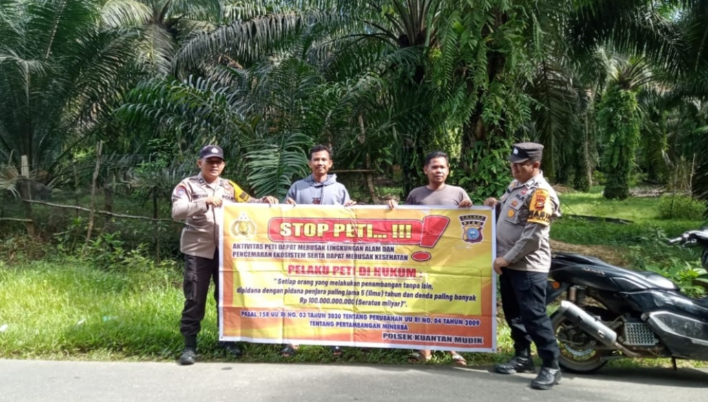 Di wilayah hukum Polsek Kuantan Mudik, kegiatan berlangsung pada pukul 11.10 WIB bertempat di Desa Pebaun. Dua personel, yakni Aipda Egi Yandra dan Bripka Safriansah, turun langsung menemui masyarakat Desa Pebaun Hilir. Dalam kesempatan itu, warga diberikan pemahaman mengenai bahaya PETI serta pentingnya menjaga kelestarian lingkungan.