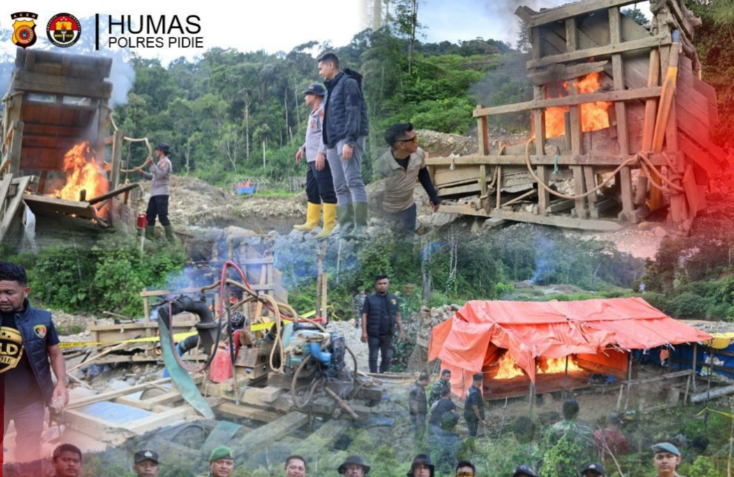 Pidie / Kupasperistiwa.id – Personel gabungan Polres Pidie bersama Kodim 0102 Pidie melaksanakan kegiatan penertiban terhadap penambangan emas tanpa izin (PETI) di wilayah pegunungan Kecamatan Geumpang, Kabupaten Pidie, Kamis (24/4/2026).