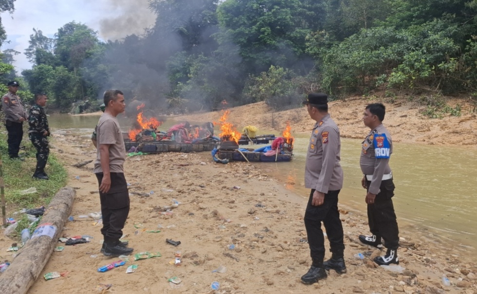 “Di lokasi ditemukan sekitar 20 unit peralatan jenis robin setingkai yang diduga digunakan untuk aktivitas PETI. Seluruh peralatan tersebut kemudian dilakukan tindakan tegas berupa perusakan dan pembakaran agar tidak dapat digunakan kembali,” tambahnya.