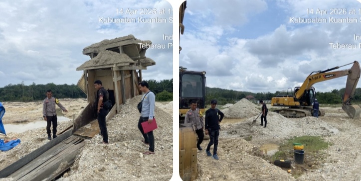 KUANTANSINGINGI / Kupasperistiwa.id – Polsek Kuantan Mudik, Polres Kuantan Singingi, melakukan patroli sekaligus pengecekan aktivitas galian C milik PT Gunung Alam Perkasa di kawasan Sungai Omul, Desa Tebarau Panjang, Kecamatan Gunung Toar, sekitar pukul 11.30 WIB. Selasa (14/4/2026)