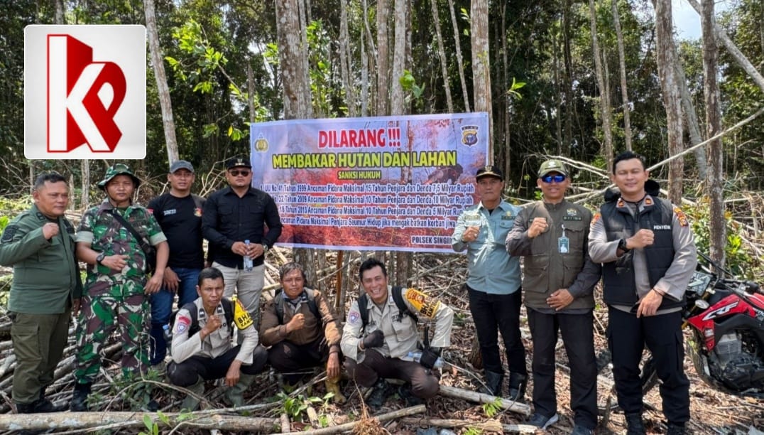 Selain plang status hukum, turut dipasang spanduk oleh Polsek Singingi Hilir berisi himbauan keras agar masyarakat tidak membuka lahan dengan cara membakar, lengkap dengan ancaman sanksi pidana. Sanksi ini merujuk pada ketentuan dalam Undang-Undang Nomor 41 Tahun 1999 tentang Kehutanan, yang telah diubah oleh Undang-Undang Cipta Kerja, di mana pembakaran hutan secara sengaja diancam pidana hingga 15 tahun penjara dan denda maksimal Rp7,5 miliar.