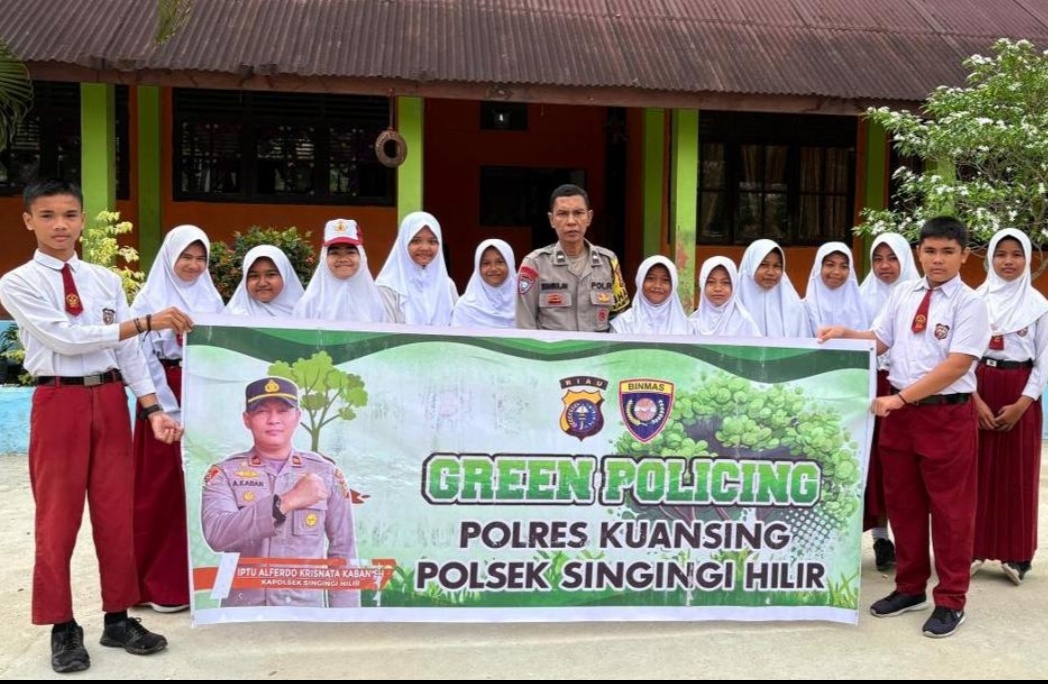 Kapolres Kuansing AKBP Hidayat Perdana, S.H., S.I.K., M.H., melalui Kapolsek Singingi Hilir IPTU Alferdo Krisnata Kaban, S.H., menyampaikan bahwa kegiatan tersebut merupakan implementasi program Green Policing yang digagas oleh Kapolda Riau, sekaligus upaya Polri dalam menanamkan kesadaran lingkungan kepada generasi muda sejak dini.