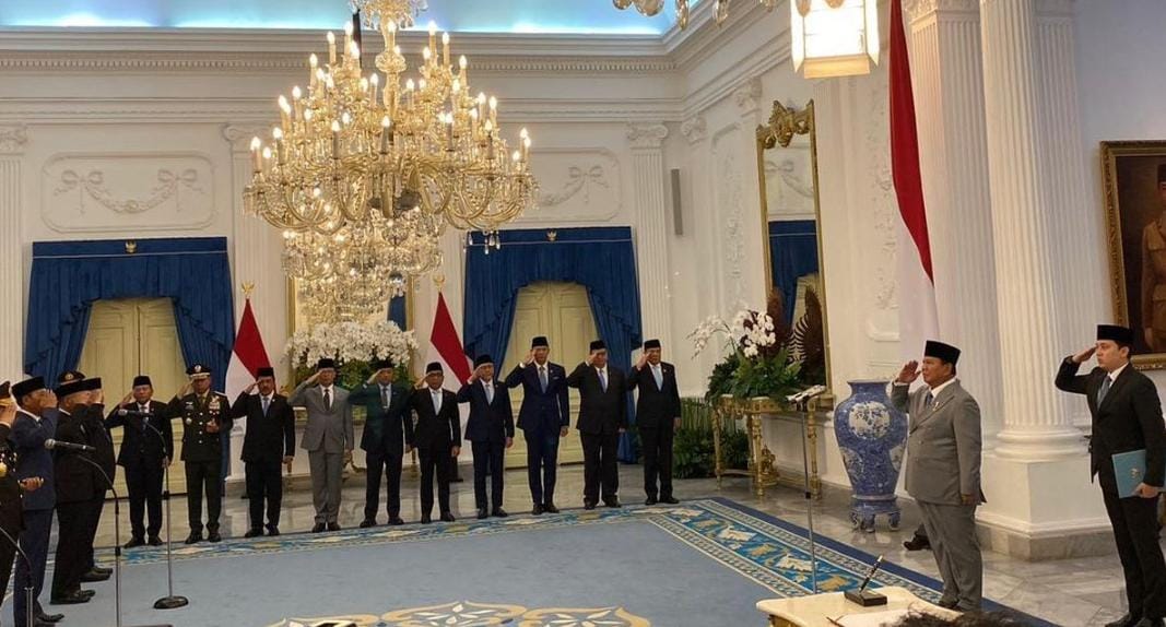 Pelantikan dimulai pukul 16.00 WIB, diawali dengan menyanyikan lagu Indonesia Raya dan dilanjutkan dengan pengambilan sumpah jabatan yang dipandu langsung oleh Presiden Prabowo.