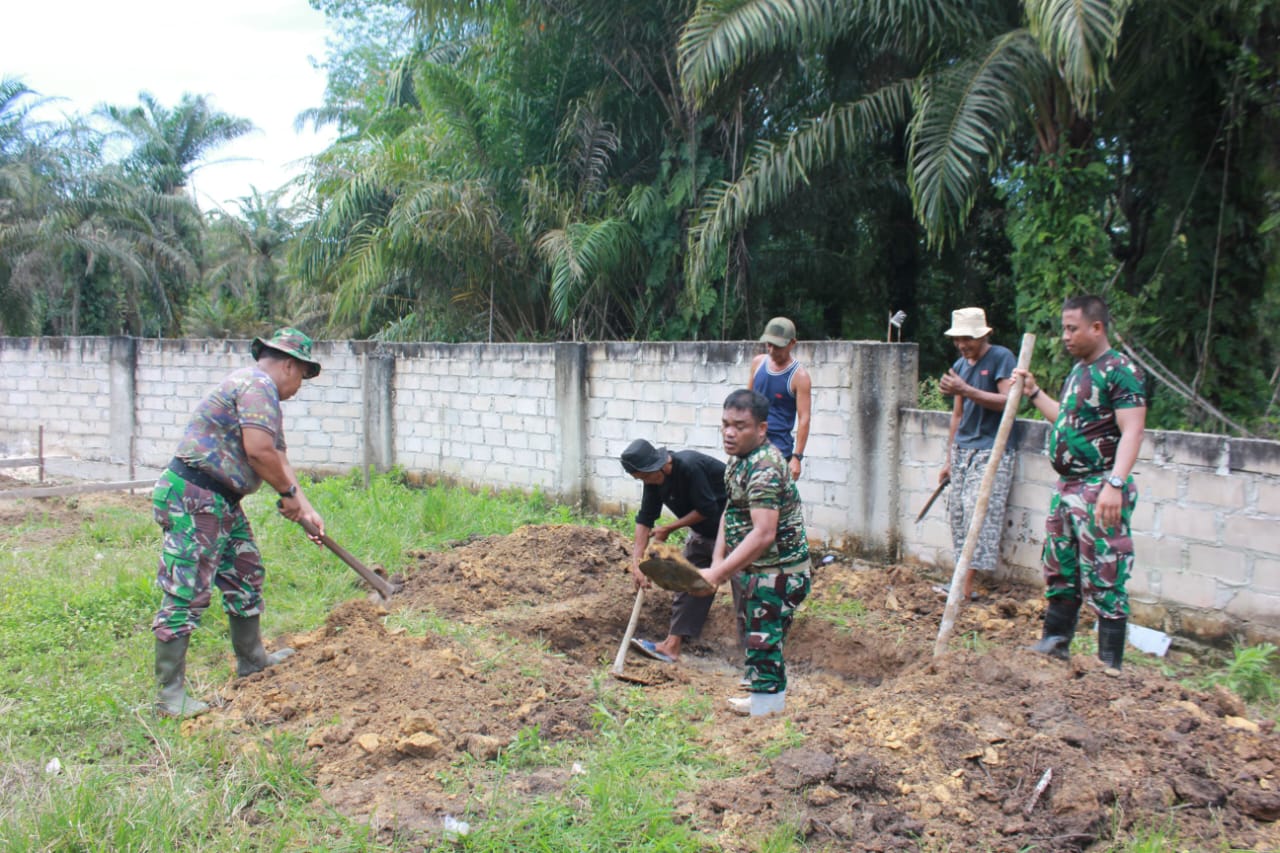 Memasuki pekan pelaksanaan TMMD, terlihat personel Satgas TMMD bersama warga Blok A bahu membahu dalam proses pembangunan MCK. Kegiatan yang berlokasi di Jalan Baru Blok A RT 14 ini menunjukkan progres yang menggembirakan. Material bangunan seperti bata, semen, pasir, dan perlengkapan sanitasi lainnya tampak sudah tersedia di lokasi, siap untuk dirakit menjadi fasilitas yang sangat dibutuhkan masyarakat.